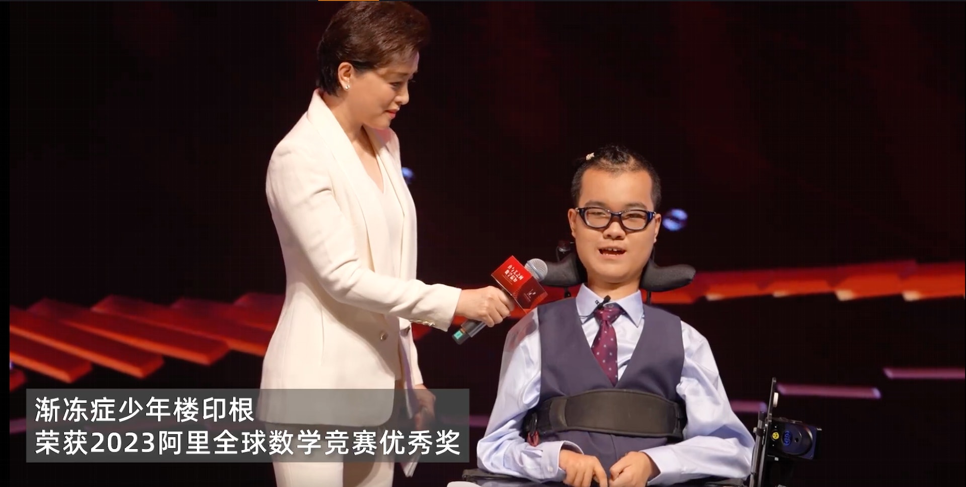 樓印根雖然身體被禁錮在輪椅上,意志與頭腦卻遠勝常人,今年他參加2023阿里巴巴全球數學競賽的優秀獎,他躺在床上答題數小時,最終獲得了優秀獎,拿到了5000美金的獎金。